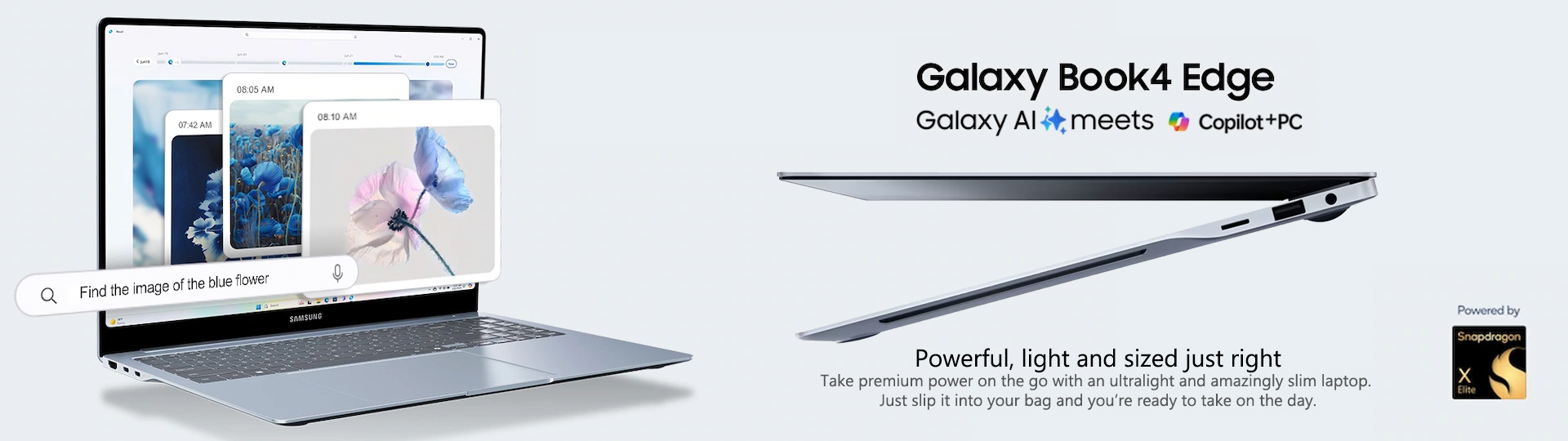 The Galaxy Book 4 Edge is Samsung’s first take on Microsoft’s new Arm-powered Copilot+ PCs. As one of the new breed of Copilot+ PCs the Samsung laptop is equipped with the Qualcomm Snapdragon Elite X Arm chip, which is also available in Microsoft’s latest Surface Pro. However, the top Galaxy Book model has a slightly faster version of the chip, which gives it about an 8% power boost on the processor and about 21% improvement in graphics.